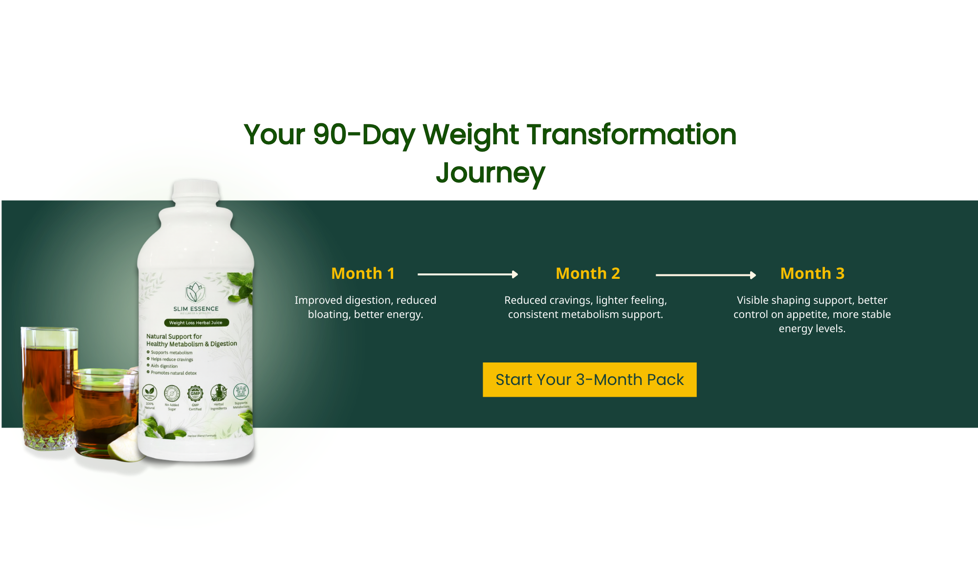 Our juice is crafted using a blend of carefully selected herbs known for their role in supporting metabolism, digestion, and natural fat management. The formula is designed to work gradually over a 90-day period — ensuring sustainable, healthy results.